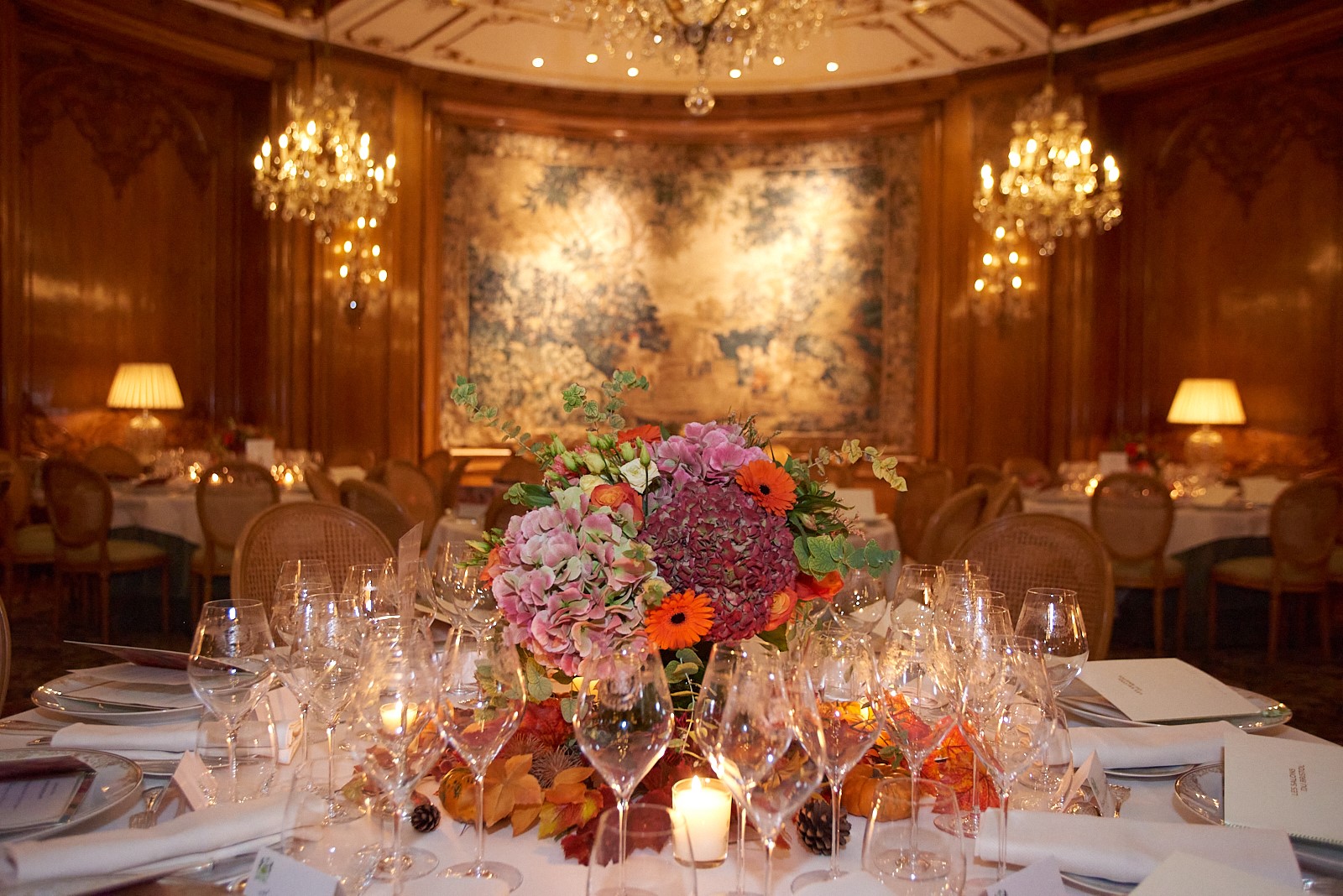 Our legendary Thanksgiving Dinner in the magnificent Salons of Hôtel Le Bristol Paris is sold out. The dinner will be held, in the historic Salon Castellane. Our menu, while remaining in the purest American tradition, will be concocted with creative audacity by Chef Arnaud Faye, Meilleur Ouvrier de France, Le Bristol’s Executive Chef which includes the three-star Épicure restaurant.