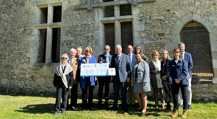 Philippe and Kathryn Favre own the Logis de Moullins, the site of numerous local cultural events in their village in Sarthe, have been the recipients of FHS restoration grants twice – once in 2007 and more recently in 2024. During an emotional thank you to donors, Philippe expressed the importance of our work perfectly: “When you receive a grant from French Heritage Society, it’s absolutely enormous—the fact that people on the other side of the Atlantic care about these monuments and care that we have dedicated our lives to restoring them.”
